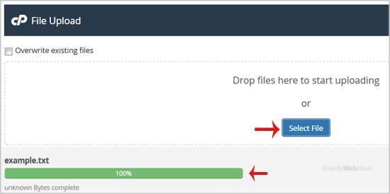 6. Click on the Select File button and select the file you want to upload from your PC. After you have selected the file, the upload process will begin automatically.
