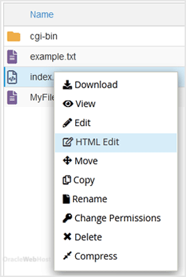 5. Right-click on the file and then on Edit or HTML Edit in the Context Menu.