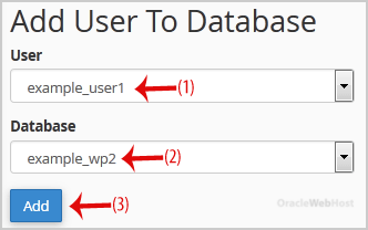 3. Scroll down to the end of the page and under Add User to Database, select a user from the dropdown list, and then choose a Database from the list.