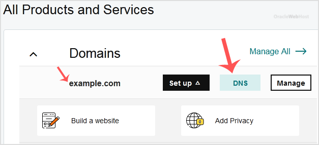 3. After a successful login, under the Domains section, click on the DNS button next to the domain you wish to manage.