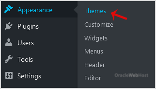 2. Under the dashboard menu, hover over Appearance and click on Themes.