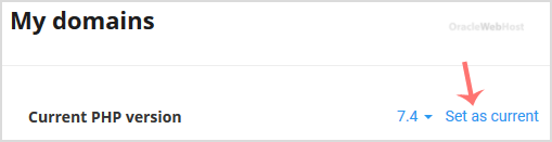 3. On the right side of Current PHP version, click on the drop-down menu and choose the version you wish to use.